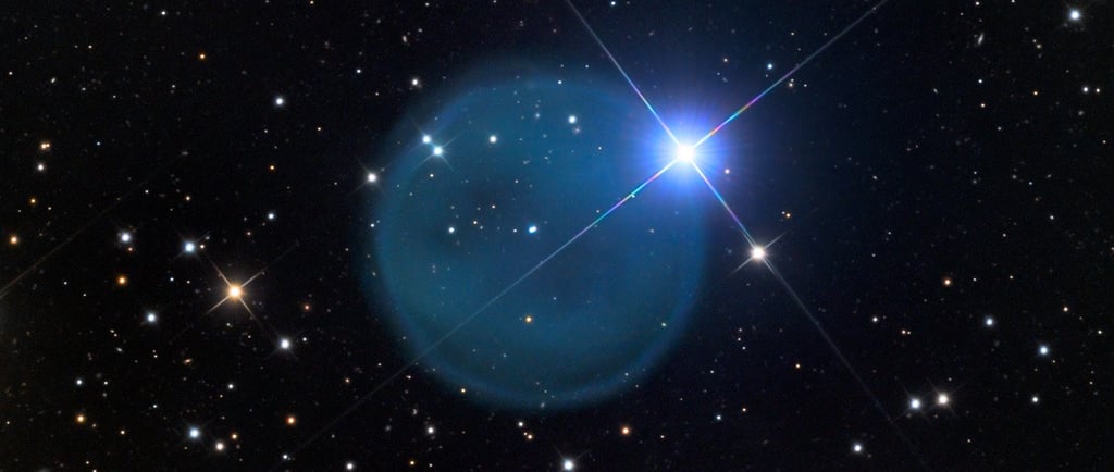 The Diamond Ring Nebula stands out due to its bright central star, which is often perceived as the 'diamond' in this cosmic imagery. This central star, a white dwarf, is the remnant core of a star that has exhausted its nuclear fuel and expelled its outer layers. The remaining gases create a shell-like structure, illustrating the complex interplay of stellar evolution. The spherical shape of Abell 33 is emblematic of many planetary nebulae, which often exhibit similar geometries as they expand into the vastness of space.